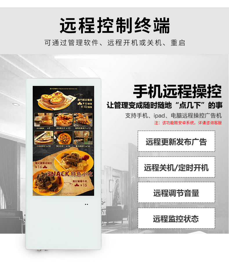 一机多用 可智能分屏,定时开关机,(选配功能:WIFI/以太网双选择,内置互联网信息发布系统。远程控制,总部后台控制)